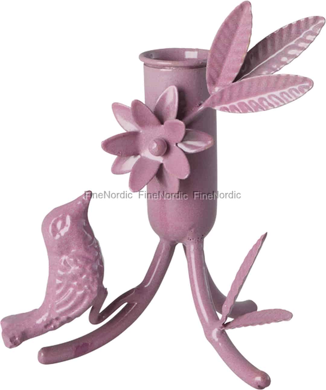 La denne fortryllende lysestaken fra Rice ta deg med til en eventyrlig hage, der naturens minste detaljer feires. Hvert element, fra den nysgjerrige lille fuglen på grenen til den delikate blomsten og bladene, er laget av metall og har en vakker, spettet lavendelglasur. Dette er en gjenstand som forteller en historie og inviterer deg til å stoppe opp og sette pris på de enkle, gledesfylte øyeblikkene i hverdagen. Designet har en herlig, håndlaget følelse som virker både autentisk og full av karakter.