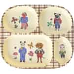 Inviter den fortryllende verdenen til den franske kunstneren Nathalie Lété til familie-bordet. Kjent for sine fargerike kreasjoner inspirert av folkekunst, forvandler hennes design dette praktiske spisesettet til et lite galleri av undere. Barnet ditt kan spise sammen med en staselig hund med sløyfe eller en vennlig panda, og oppdage nye detaljer i hver eneste bit. Den kremfargede melaminen danner det perfekte bakteppet for disse livlige, historierike illustrasjonene, noe som gjør hver del til en liten skatt.