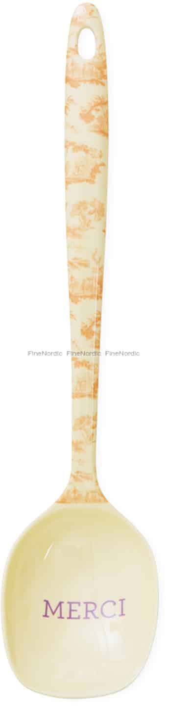 La kokeskjeen 'Glory Days' fra Rice ta deg med til et solfylt kjøkken på den franske landsbygda. Det delikate, oransje mønsteret i toile-stil på det kremfargede håndtaket forteller en historie om landlige landskap og enklere tider, og bringer en fortellende sjarm inn i hjemmet ditt. Hver detalj, fra den blanke overflaten til det søte 'MERCI' i skålen, er designet for å tenne en liten gnist av glede i hverdagen. Det er mer enn bare en kokeskje; det er en liten feiring av skjønnhet i hjertet av hjemmet ditt.