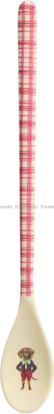Fra den fantasifulle verdenen til den franske kunstneren Nathalie Lété kommer denne vidunderlig muntre latteskeen fra Rice. Stjernen er en elegant liten mus, kledd i sin fineste stas, klar til å bringe et smil til ansiktet ditt med hvert eneste røretak. Hans sjarmerende karakter er satt mot en enkel, kremfarget bakgrunn, som lar personligheten hans skinne gjennom. Det klassiske, rutede håndtaket i rødt tilfører et snev av rustikk varme, som minner om en piknik på den franske landsbygda eller en koselig kjøkkenduk. Det er et design som forteller en historie og inviterer deg til å stoppe opp og sette pris på de små, gledesfylte øyeblikkene.