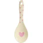 Fra den fargerike verdenen til Rice kommer en serveringsskje som er mer enn bare et redskap; den er en invitasjon til å feire hverdagen. 'Favorite Hearts'-skjeen fanger merkets filosofi om å bringe farge og moro inn i hjemmet. Den glatte, blanke melaminen føles herlig i hånden, mens de muntre rosa hjertene på en kremfarget bakgrunn forvandler den enkle handlingen å servere et måltid til et øyeblikk av glede. Se for deg skjeen hvile i en stor bolle med friske, grønne blader – en nydelig kontrast som lyser opp hele bordet.