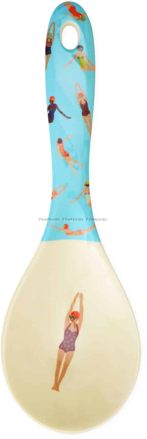 Husker du gleden av en perfekt sommerdag? Denne herlige salatskjeen fra Rice fanger nettopp den følelsen, med sine lune illustrasjoner av retro-svømmere som glir gjennom svalt, turkist vann. Den er designet for å bringe et smil til ansiktet ditt og et snev av leken nostalgi til bordet.