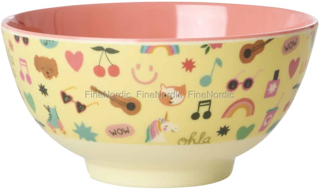 Rice Melamin Skål - "Unicorn Love" - Myk Gul - Medium