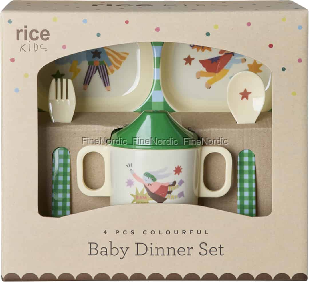 Gjør hvert måltid om til en herlig historie med dette sjarmerende Hero-spisesettet fra Rice. Designet for å fange fantasien til den lille, gjør de lekne superheltillustrasjonene og glade fargene frokost, lunsj og middag til et gledesfylt eventyr.