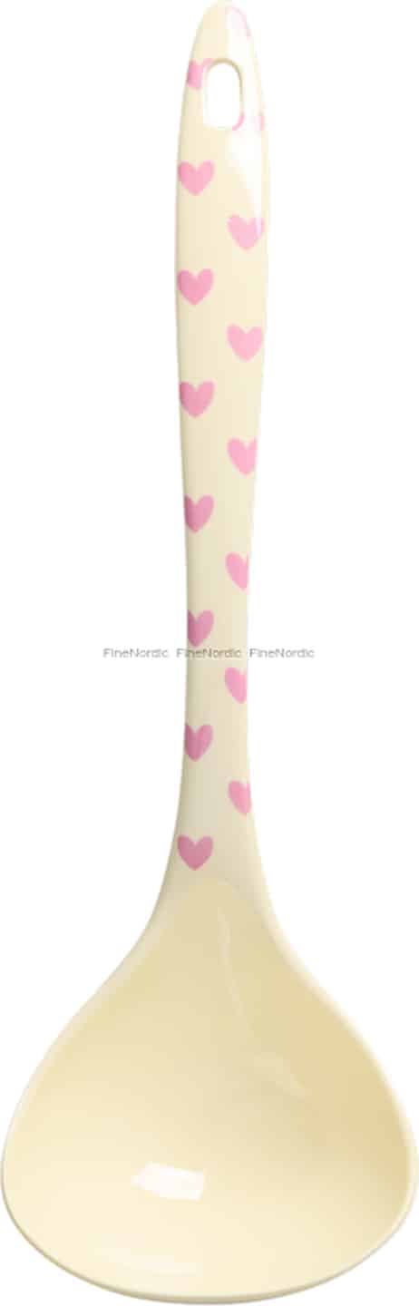 Se for deg at du øser opp en varm, trøstende suppe på en kjølig kveld. Denne herlige suppeskjeen fra Rice, med sine lekne rosa hjerter på en kremfarget bakgrunn, tilfører et streif av kjærlighet til hver servering og forvandler enkle måltider til dyrebare øyeblikk.
