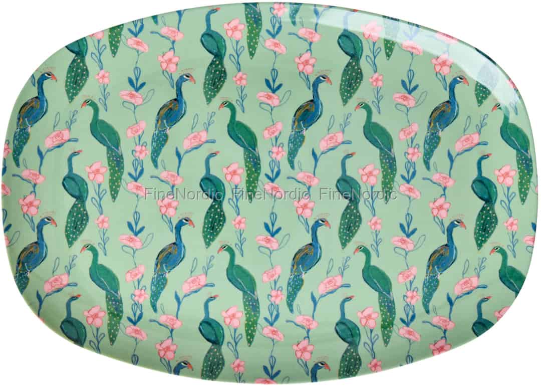 Rice melamin tallerken - rektangulær - "Peacock Power" - grønn, kjøp her i vår nettbutikk.