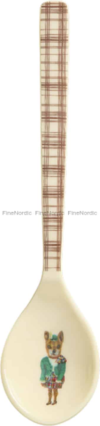 Oppdag den fortryllende verdenen til Nathalie Lété med denne vakkert illustrerte teskjeen fra Rice. Lété er kjent for sine eventyrlige og fargerike kreasjoner, og hun tar med seg sin signaturstil til kjøkkenet ditt med en sjarmerende, påkledd figur som ser ut til å ha hoppet rett ut av en eventyrbok. Det varme, rutete skaftet skaper en nydelig kontrast og tilfører et snev av rustikk hygge. Dette er ikke bare en skje; det er en liten invitasjon til å finne glede i de små tingene, og den gjør hver omrøring i teen din til en herlig opplevelse.