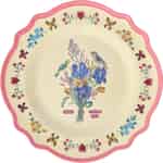 La spiseopplevelsen din bli en feiring av kunst og glede med denne slående vintagetallerkenen fra Rice. Den er en spesiell kreasjon i samarbeid med den anerkjente franske kunstneren Nathalie Lété, og designet er en hjertevarm hyllest til naturens enkle skjønnhet. Den kremfargede overflaten er et perfekt bakteppe for den intrikate buketten, der fargerike fugler sitter blant delikate blomster, og sommerfugler flagrer langs den kamskjellformede korallkanten. Dette er en gjenstand som forteller en historie og inviterer til samtaler og smil.