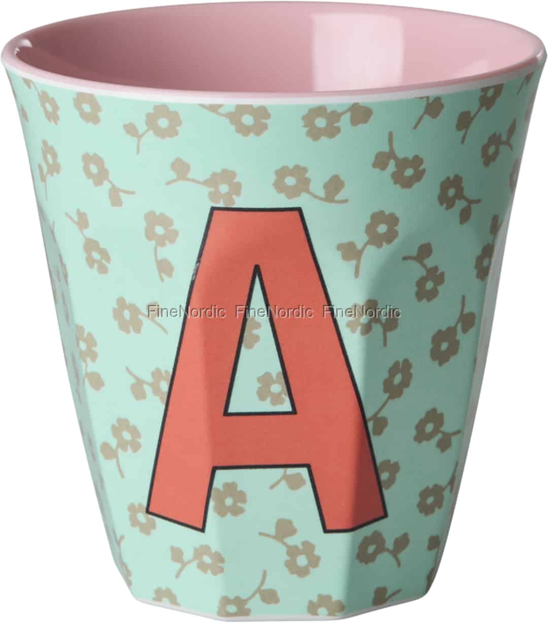 Se for deg morgenkaffen eller -teen servert i en kopp som føles som om den er laget kun for deg. Denne vakre alfabetkoppen fra Rice kombinerer et lekent design med praktisk funksjonalitet i hverdagen. Den blanke melaminen føles glatt i hånden, mens den mintgrønne utsiden, prydet med søte, beige blomster, danner en sjarmerende bakgrunn for den dristige, korallfargede bokstaven. Innsiden i en nydelig, myk rosafarge gir en herlig, skjult overraskelse hver gang du tar en slurk.
