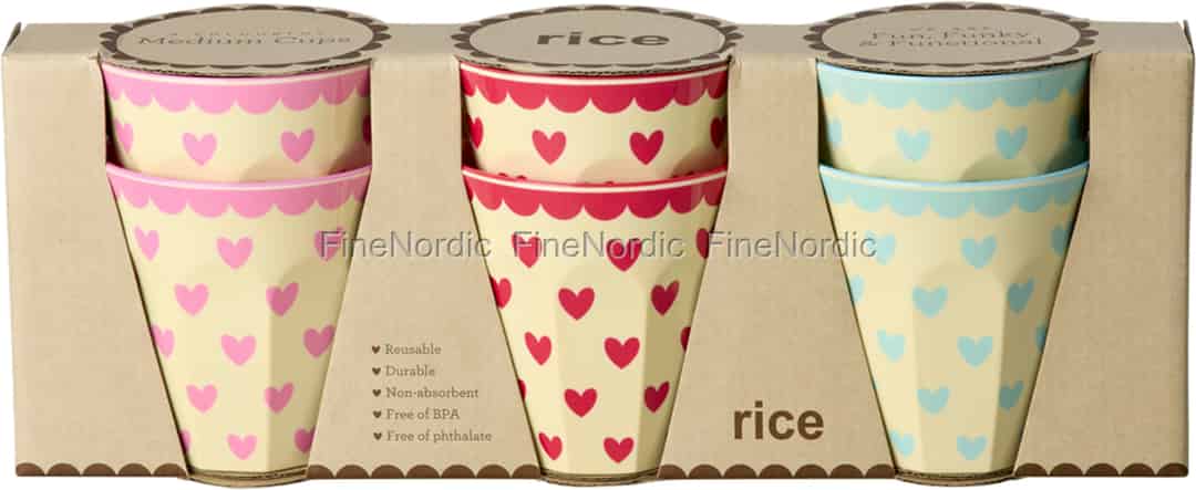 Rice Melaminkopper "Favorite Hearts" Medium - 6-pakning