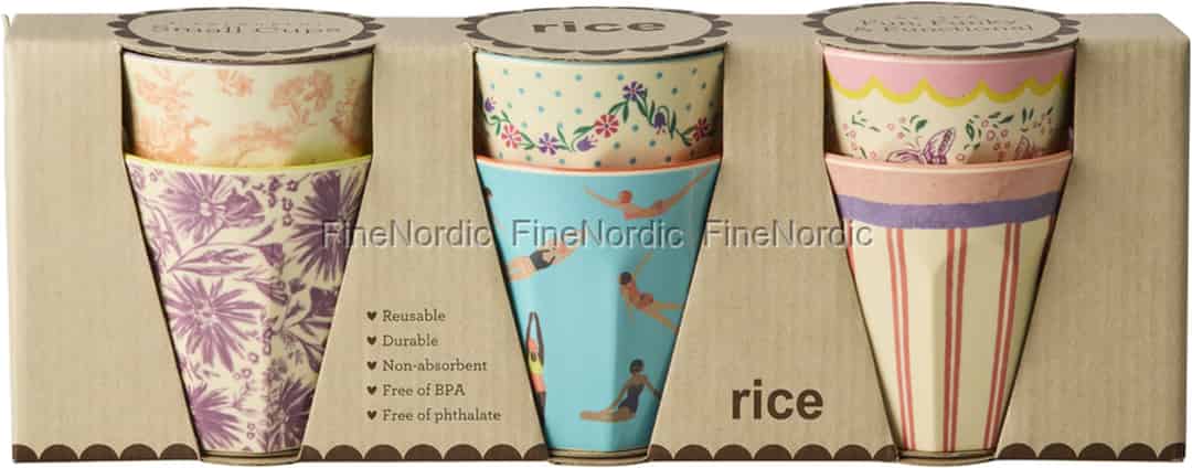 Rice Melaminkopper "Glory Days" Små - Sett med 6 i Gaveeske