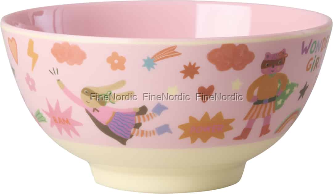 Gjør frokost, lunsj og mellommåltider til et spennende oppdrag med denne herlige Hero-skålen fra Rice. Den glade rosafargen og de lekne illustrasjonene av dyresuperhelter vil garantert få frem smilet hos den lille.