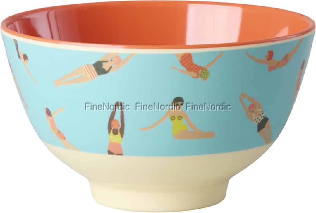 Husker du den enkle gleden av en solfylt ettermiddag ved vannet? Denne sjarmerende skålen fra Rice fanger nettopp den følelsen. Det lekne retromotivet med svømmere og de livlige fargene bringer et snev av nostalgisk sommerglede til ethvert øyeblikk.