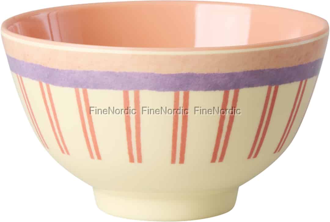 Se for deg å starte dagen med en skål som er like munter som en sommermorgen. Denne herlige melaminskålen fra Rice, med sine lekne striper og varme, ferskenfargede innside, er designet for å bringe et smil til ansiktet ditt ved hvert måltid.