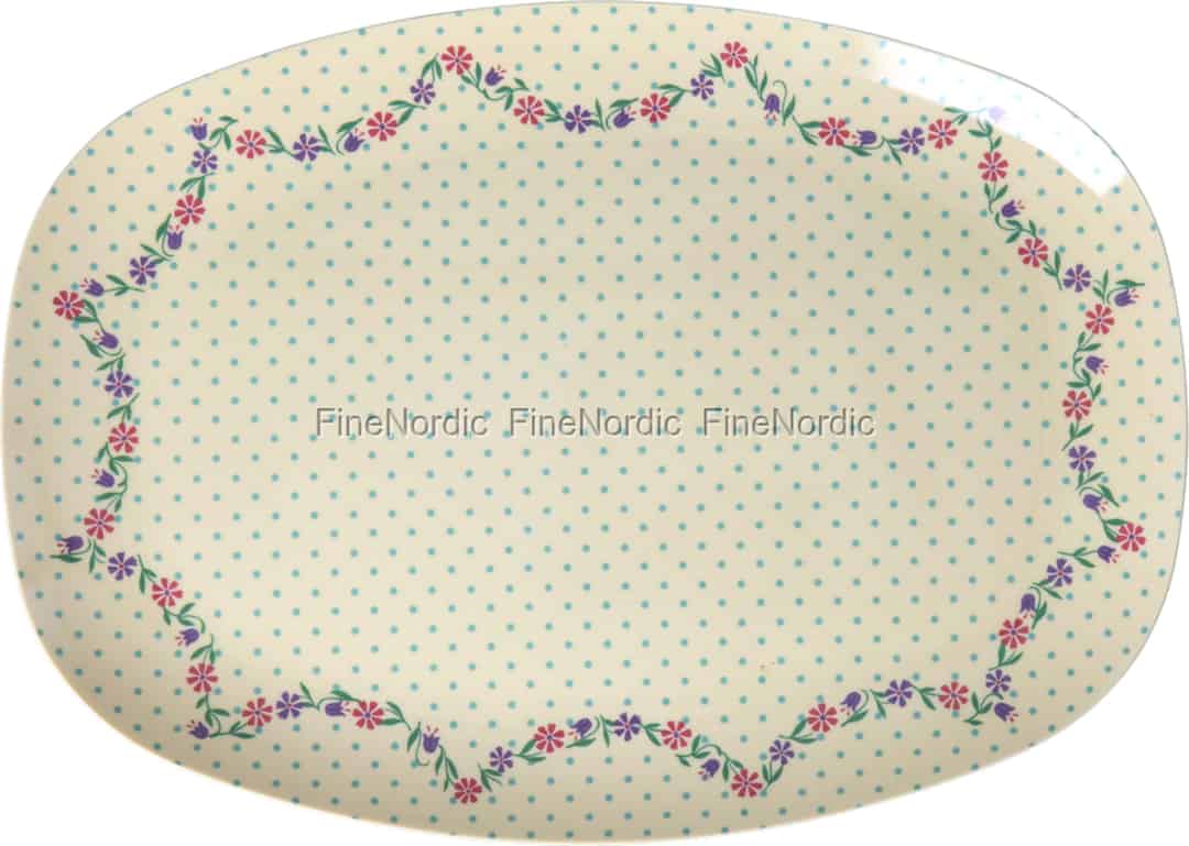 Rice Melamintallerken - Rektangulær "Dots and Flowers"