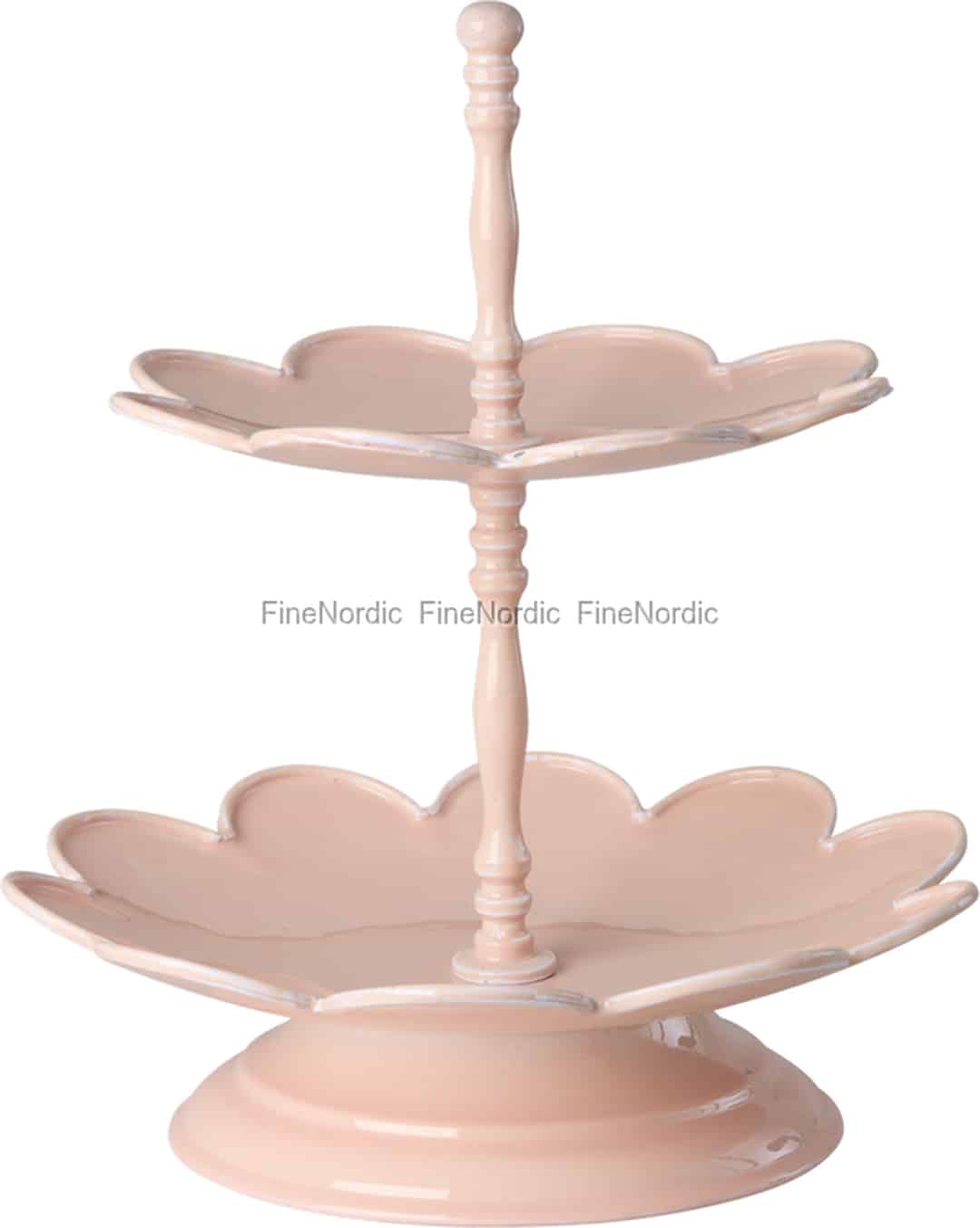 Forestill deg et snev av vårlig sjarm i hjemmet ditt, uansett årstid. Denne herlige etageren, med sin dusrosa farge og blomsterformede etasjer, er en vakker scene for dine mest dyrebare pyntegjenstander.