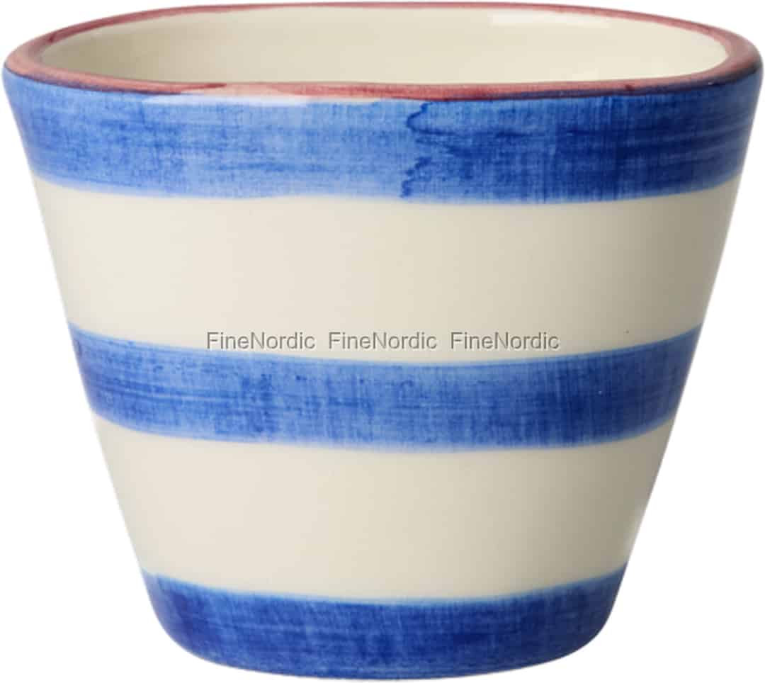Rice Oval espressokopp i keramikk - Håndmalte blå striper