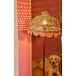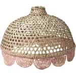 Rice Raffia lampeskjerm - Kuppelformet - Brodert kamskjellkant - Dusrosa