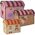 Forvandle rydding fra en kjedelig plikt til et herlig eventyr. Dette sjarmerende settet med tre raffiahus fra Rice gir en magisk bolig til din lilles leker, skatter og heltefortellinger. Hver kurv er en historie som venter på å utfolde seg.