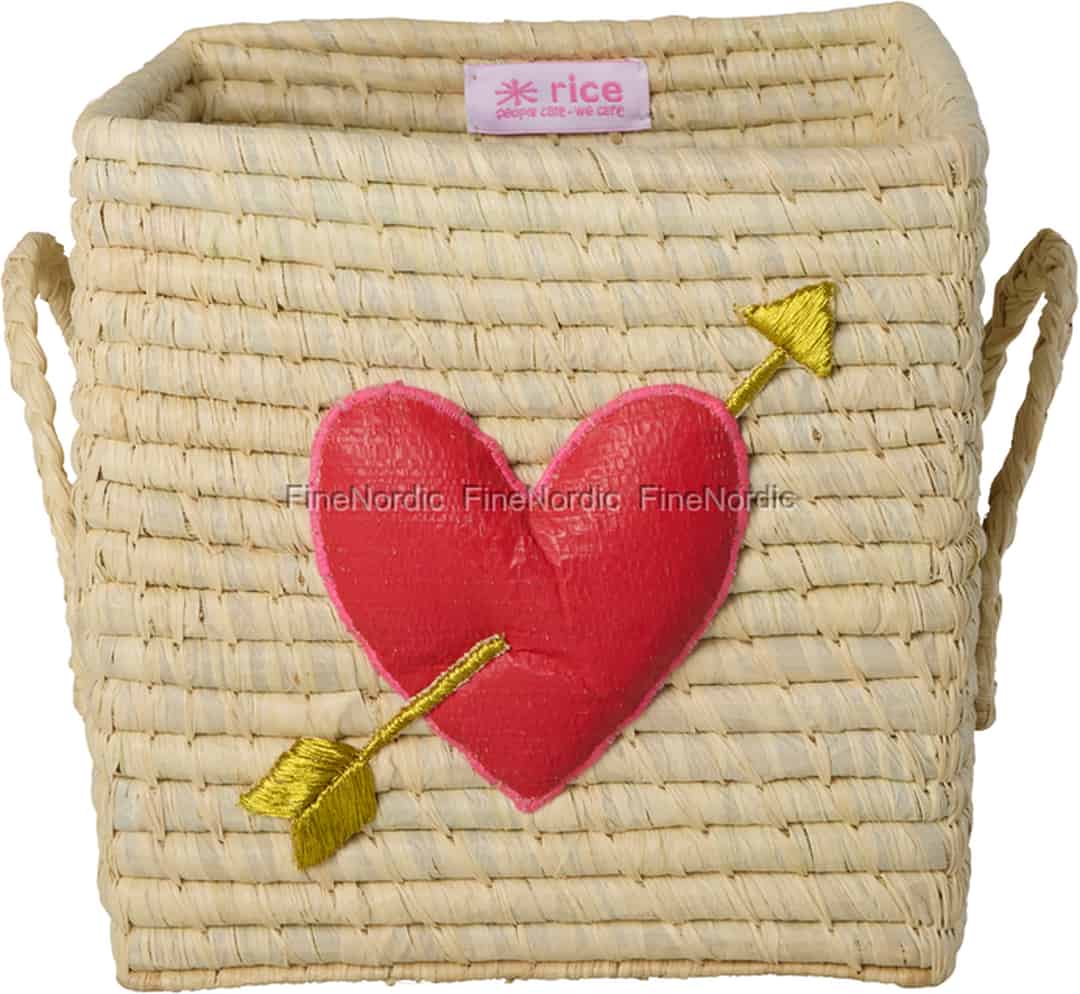 Rice Raffiakurv - Firkantet - 3D-hjerte - Raffiahåndtak - Liten