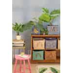 - Romslig og praktisk oppbevaring: Med sine generøse mål på 30 x 30 cm har denne firkantede kurven den perfekte størrelsen for å rydde unna leker eller tepper, mens de solide, integrerte håndtakene gjør den enkel å flytte rundt.