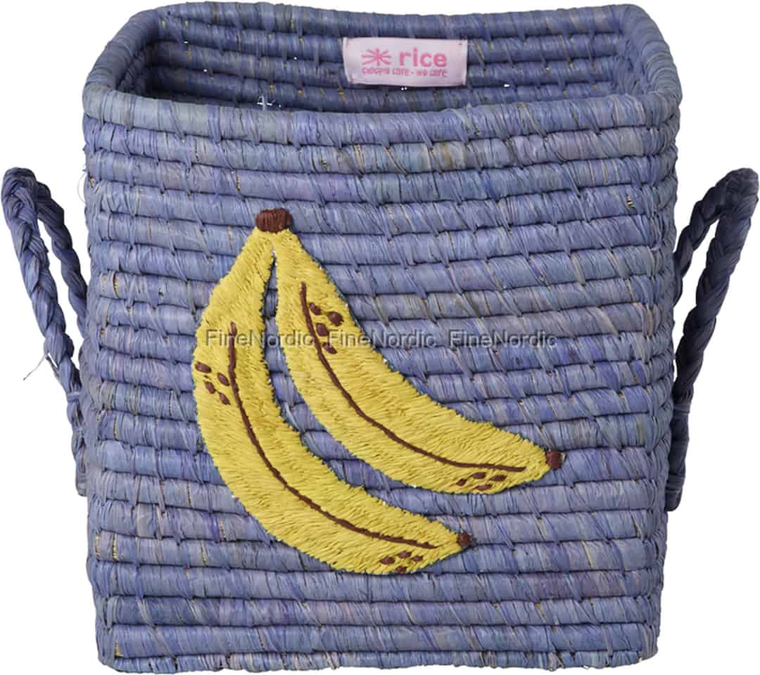 Tilfør hjemmet ditt et herlig og uventet preg med denne vidunderlige kurven fra Rice. Det lystige bananbroderiet og den vakre, støvblå raffiaveven vil garantert få deg til å smile hver gang du ser den.
