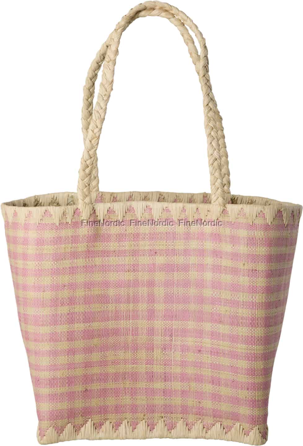 Rice Raffiaveske - Rosa ruter - Raffiahåndtak - Liten