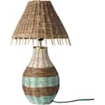 - Et preg av naturlig tekstur: Den omhyggelig vevde basen og skjermen i raffia tilfører en herlig taktil kvalitet til innredningen din, og skaper en myk, organisk følelse i ethvert rom.