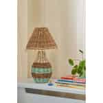 Inviter et snev av leken sjarm inn i hjemmet ditt med denne vakre bordlampen fra Rice. Den håndvevde basen av raffia har herlige fargestriper, noe som skaper et produkt som er like mye et kunstverk som en kilde til varmt og innbydende lys.