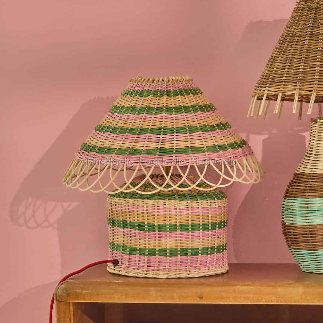 Rice Rattan bordlampe - Rosastripet - E27-sokkel og 2-polet støpsel - Lav