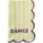 La borddekkingen din synge en sang av ren glede med denne fortryllende servietten fra Rice. Kjent for sine livlige design, gir Rice oss et produkt som perfekt fanger stemningen av en solfylt brunsj eller en munter familiemiddag. Den myke, kremfargede bomullen, mønstret med glade gule striper, danner et nydelig lerret for stjernen i showet: den gledelige invitasjonen til å «DANCE» i et mykt, lilla broderi. Det er en liten detalj som utgjør en stor forskjell, og som forvandler ethvert måltid til en liten feiring.