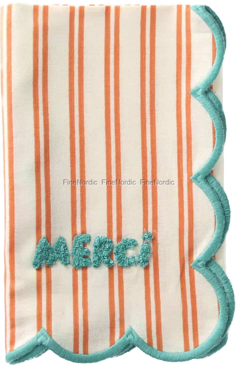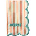 Tilfør måltidene dine en klype takknemlighet og en stor dose sjarm. Denne herlige stofservietten fra Rice kombinerer lystige oransje striper med et lekent, tufset 'Merci', og forvandler hvert måltid til en liten feiring av samværet.