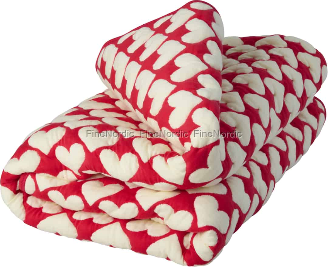Rice Vattert bomullsteppe - Hjertemønster - Krem og rød 130 x 180 cm