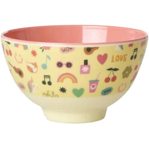 Rice Melamin Skål - "Unicorn Love" - Myk Gul - Liten