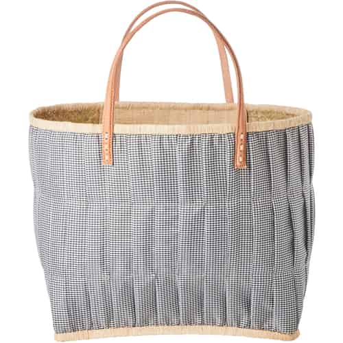 Rice Raffia Shopperveske - Stoffdekket - Lærhåndtak - Svart Vichy - Stor