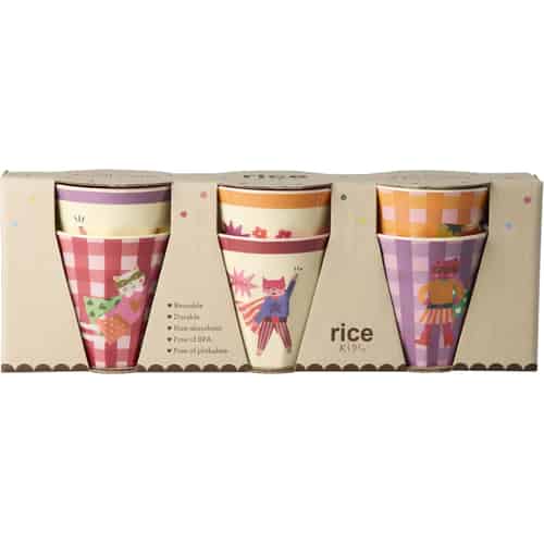 Rice Melamin Kopper - "Jungle" - Rosa - Liten - Sett med 6 i Gaveeske