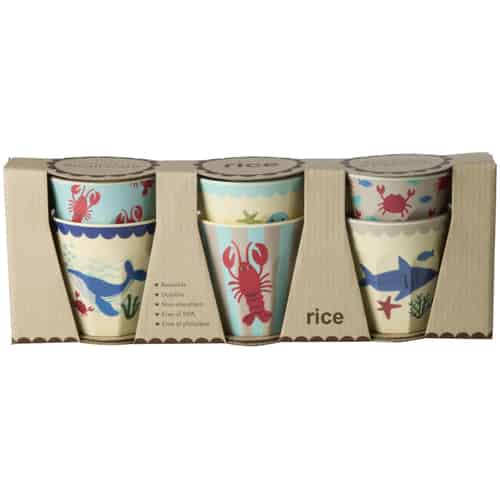 Rice Melamin Kopper - "Ocean" - Blå - Liten - Sett med 6 i Gaveeske