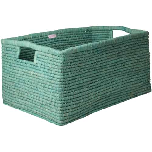 Rice Raffia Kurv - Kvadratisk - Raffiahåndtak - Mint - Liten