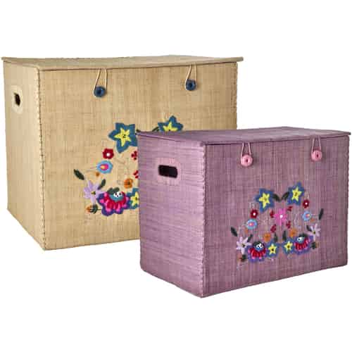 Rice Raffia Oppbevaringskurver - Sammenleggbare - Lavendel & Natur - Broderi - Sett med 2