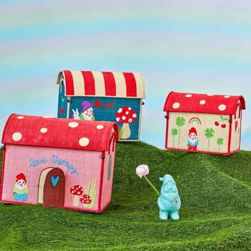 Rice Raffia Oppbevaringskurv - Rund - "Happy Forest" Broderi - Stor