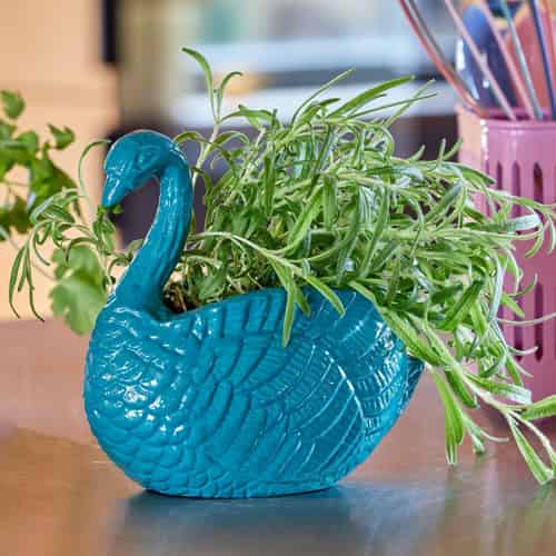 Rice Metall Blomsterpotte - Svane-form - Blå-Grønn - Liten