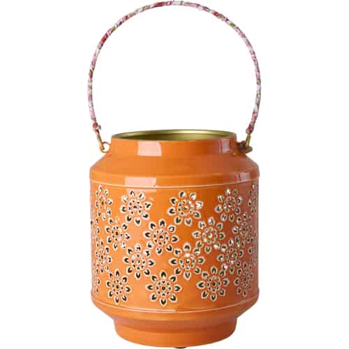 Rice Metalllykt - Blomstermønster - Stoffkledd håndtak - Oransje