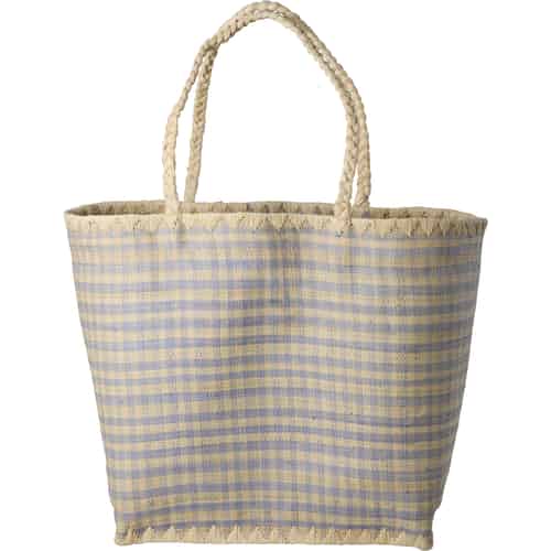 Rice Raffiaveske - Blå ruter - Raffiahåndtak - Stor