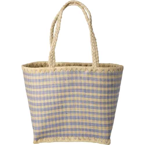 Rice Raffiaveske - Blårutet - Raffiahåndtak - Liten