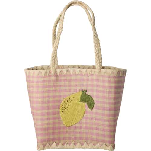 Rice Raffiaveske - sitronbroderi - rosa - liten