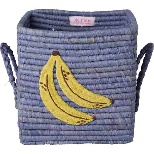 Rice Raffiakurv - Firkantet "Big Banana"-broderi - Raffiahåndtak - Liten