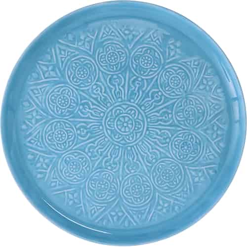 Rice Rundt metallbrett - Blå - Preget mønster - Stor