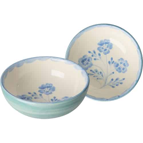 Rice Keramikkskål - Håndmalte blå blomster - Grønn På lager