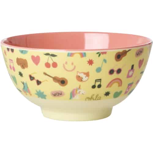 Rice Melamin Skål - "Unicorn Love" - Myk Gul - Medium På lager