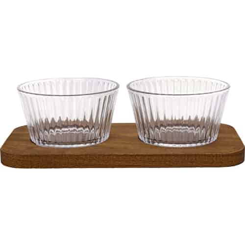 GreenGate Skåler i klart glass med trebrett, sett med 2 På lager